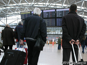 [cnn-photo-caption image= http://i2.cdn.turner.com/cnn/2010/images/04/20/germany.airport.gi.art.jpg caption="Passengers look at a time table announcing cancelled flights at the airport in Hamburg, Germany, on April 16, 2010. "]